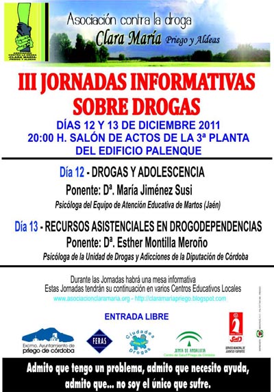 III jornadas formativas sobre drogas: días 12 y 13 de diciembre.